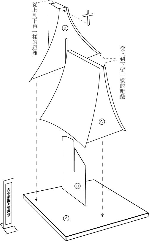 簡介 路思義教堂是東海大學的精神表徵,曲線造形優美,是台灣最成功的建築物之一。由貝聿銘、陳其寬、張肇康規畫設計,教堂的設計始於1956年秋天,1963年完工。